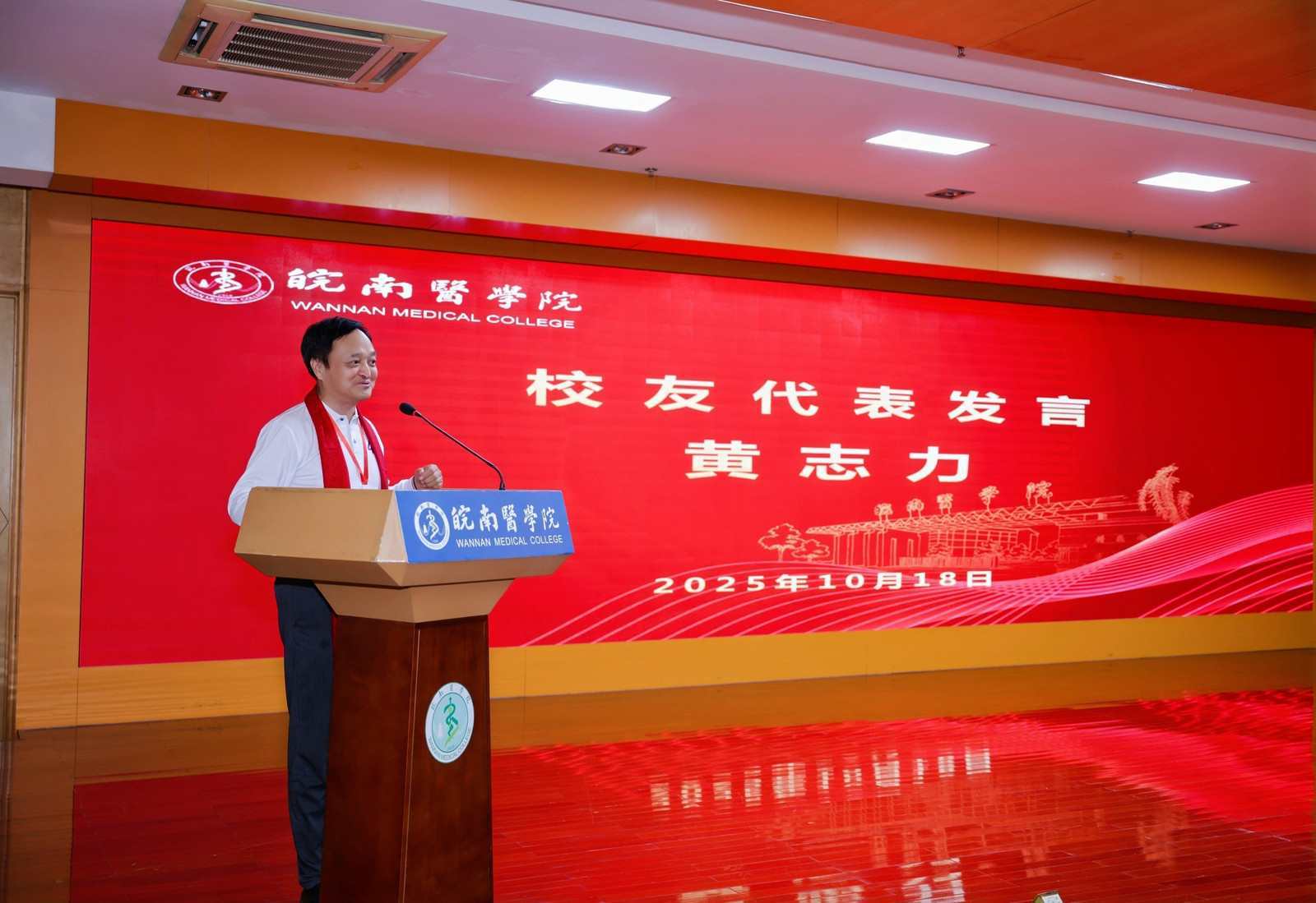 辅导员代表在发言中重温了校友们在校时的青春点滴,高度赞扬大家毕业后在医疗、教育、管理等领域取得的优异成绩,勉励校友们继续传承发扬“皖医精神”,在各自岗位上续写精彩。