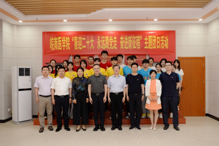 青春献礼二十大,强国有我新征程。5月30日下午,我校在思政课虚拟仿真实践教学中心举办“喜迎二十大 永远跟党走 奋进新征程”主题团日活动。团省委副书记、省青联主席李波,校党委副书记吴金月、副院长郑兰荣,团省委学校部部长邹永生、副部长张国栋,团市委兼职副书记钱彬彬出席活动,与20余名青年学子共赴青春之约。本次主题团日活动以“学党史 知团史 铭校史”为主线,结合医学院校历史和专业特色,围绕“守初心”“悟方向”“担使命”等关键词,打造了一场形式多样、内涵丰富的青春思政课。
